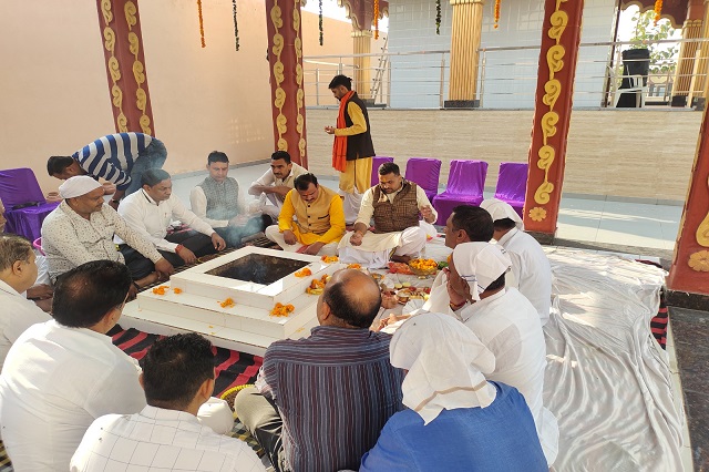 GAO MATA GAO CHARAND SANRAKSHAN SAMITI is a Hindu organization that is dedicated to the protection and preservation of cows, which are considered sacred in Hinduism. It is likely that we organize and perform yagnas as part of our religious activities and as a means to seek divine blessings for the protection and welfare of cows. A Yagna Shala refers to a place where yagnas are performed. It is typically a sacred space with a fire pit, where offerings and oblations are made and rituals are performed.